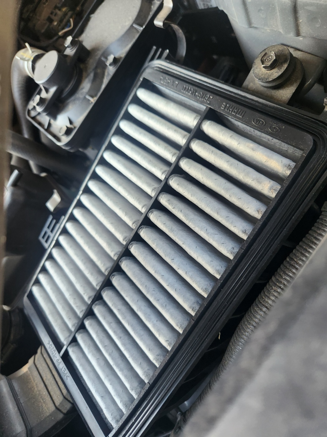안쪽에 숨어있는 곳이 하나 더 있습니다. 이렇게 이곳을 탈거하고 열면 그동안 고생한 에어필터를 만나볼 수 있습니다.